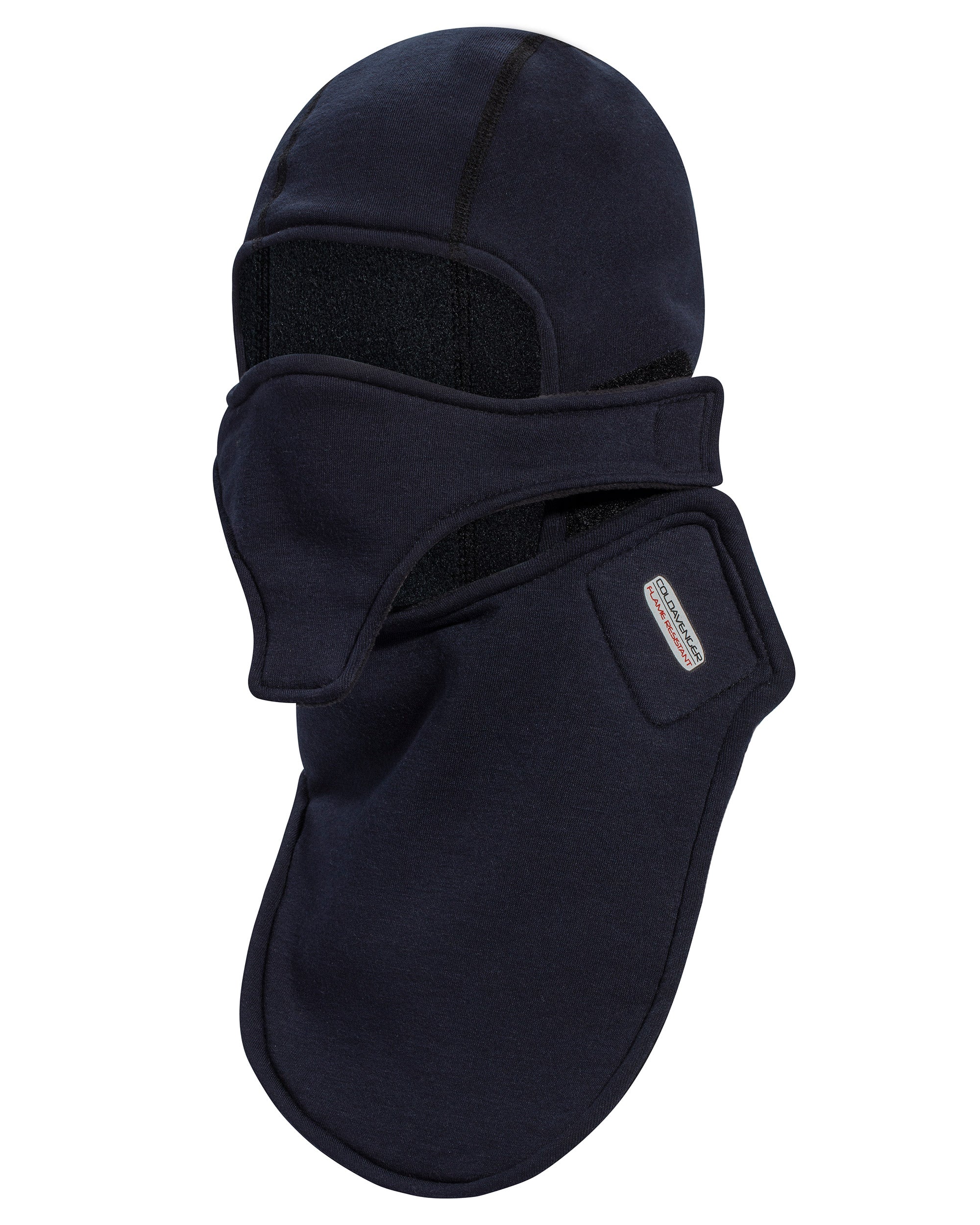 The FR 2-Layer Hard Hat Liner for half-face respirators is a specialty headwear designed for workers who must wear a half-face respirator in extreme cold. The liner is made of two parts: a balaclava hood that covers the head and neck, and a respirator cover that attaches over a half-face respirator mask by hook-and-loop.