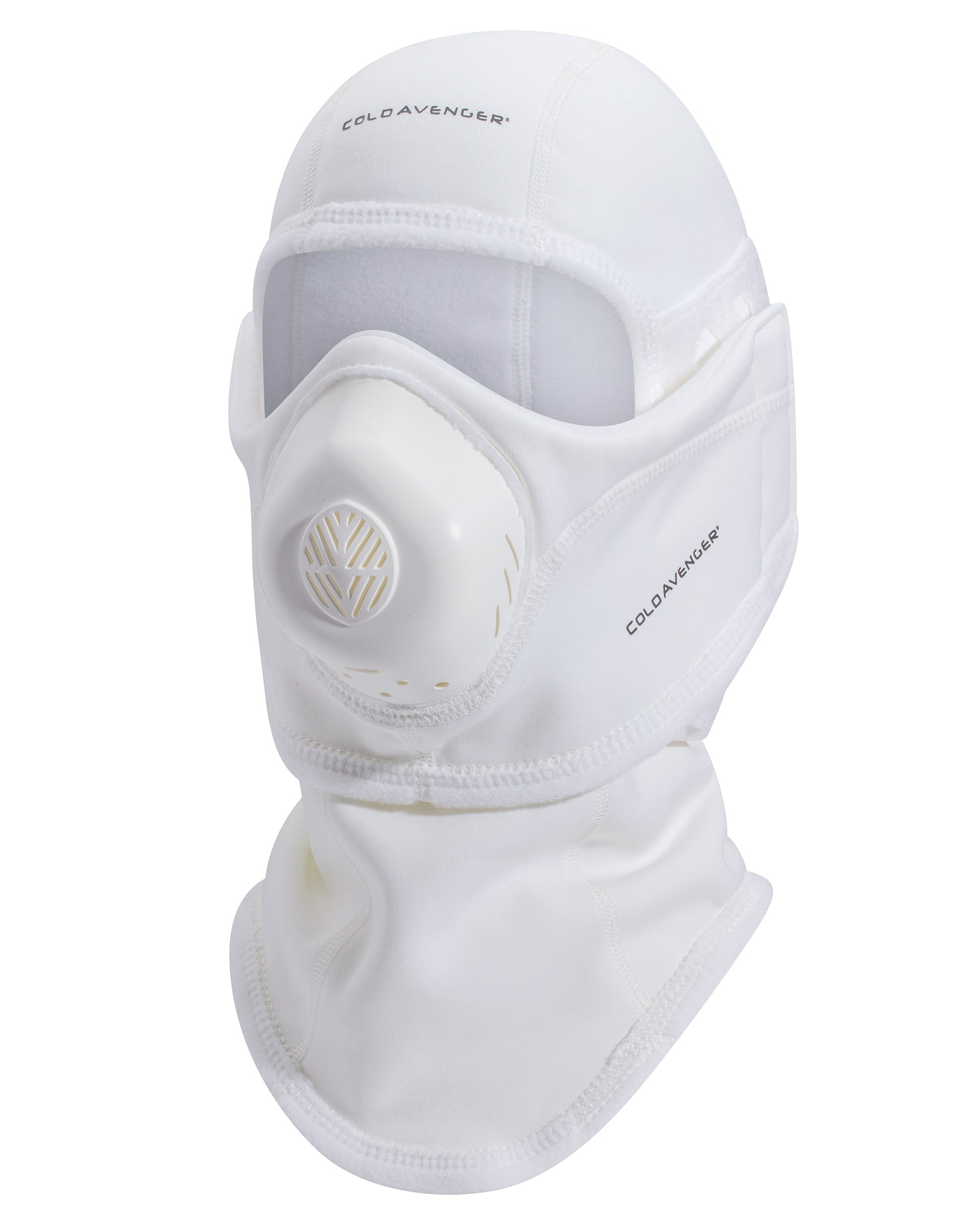 The Expedition Balaclava is designed to protect against the coldest temperatures. This two-piece system provides premium protection: the balaclava hood covers the head and neck, and the detachable face mask covers the nose and mouth. The face mask has our patented ventilator that helps warm and humidify inhaled air. A hidden nose wire allows a custom fit.