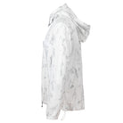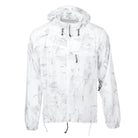 Featuring a dual slide front zipper and elastic drawstring at the bottom hem. Extra large pit-zippers allow for ventilation and access. The three-piece hood has a brim at the forehead and elastic drawstrings for custom fit. The hood can be stowed in a zippered pocket on the collar. The jacket can be packed into an inner pocket for convenient storage.